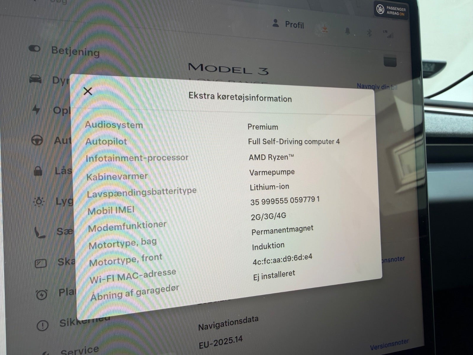 , kørecomputer, digitalt cockpit, akustikglas i for, akustikglas i bag, multifunktionsrat, læderrat, kunstlæderindtræk, el indst. førersæde m. memory, splitbagsæde, mørk loftbeklædning, ambiente belysning, 19" alufælge, glastag, el-klapbare sidespejle m/varme, tågelygter, adaptive forlygter, led baglygter, mørktonede ruder i bag, automatgear, varme i rat, 4 zone klima, elektrisk kabinevarmer, nøglefri adgang, aut. nedbl. bakspejl, varme i forrude, adaptiv fartpilot med kø-assistent, udv. temp. måler, sædekøling, sædevarme, 4x el-ruder, el betjent bagklap, frunk, trådløs mobilopladning, navigation, håndfrit til mobil, musikstreaming via bluetooth, android auto, apple carplay, regnsensor, bakkamera, parkeringssensor (bag), parkeringssensor (for), skiltegenkendelse, isofix, automatisk lys, fjernlysassistent, 7 airbags, esp, vognbaneassistent, blindvinkelsassistent, automatisk nødbremsesystem, automatisk nødassistent, auto hold